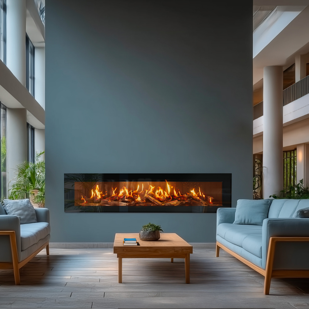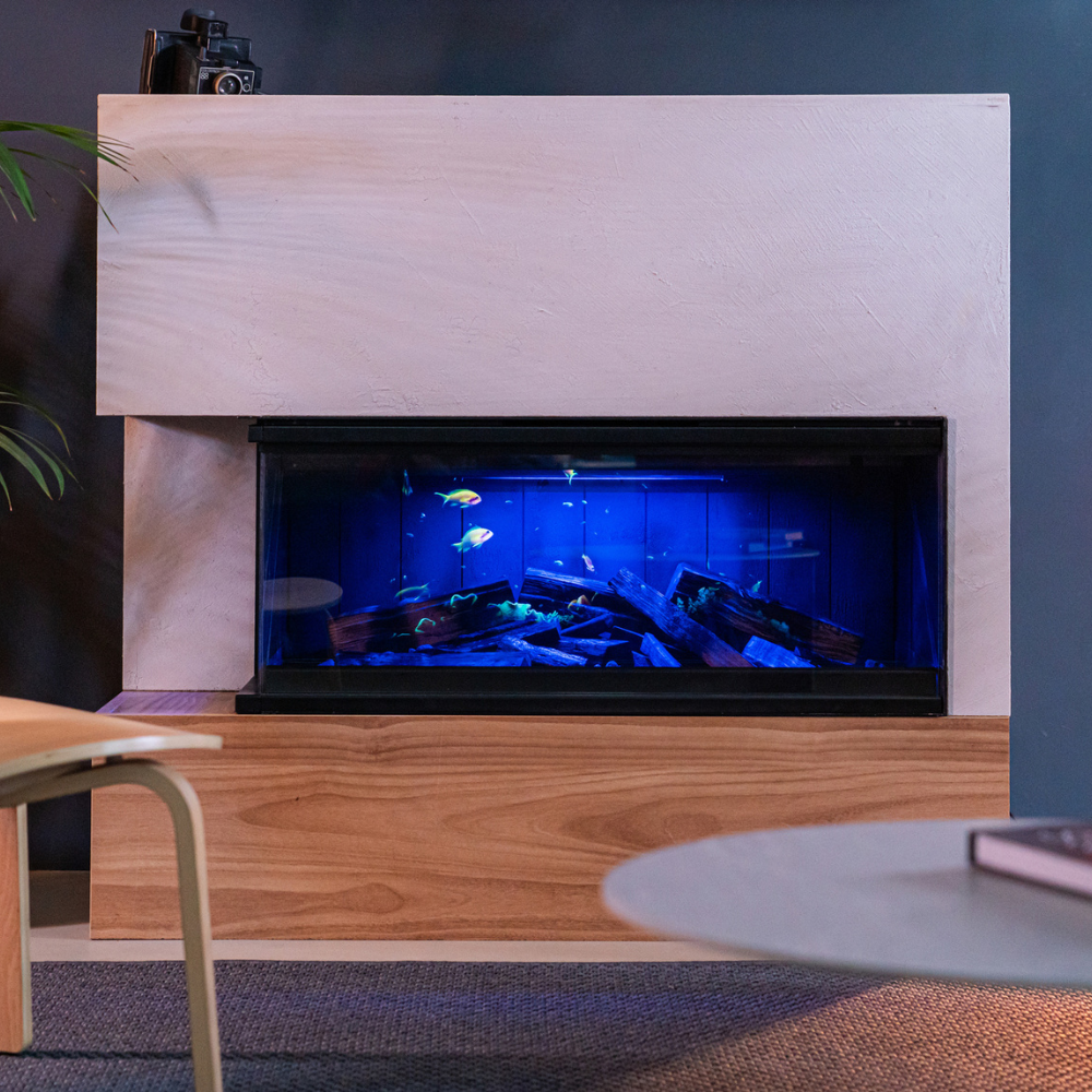Lareira elétrica de design versátil, disponível em versão de uma, duas ou três faces, ideal para integrar em qualquer espaço. Equipada com chama holográfica ultra-realista através de display LED de última geração, inclui troncos de madeira verdadeira estabilizados. Permite alternar entre cenário de chamas ou aquário, com som ambiente natural integrado para uma experiência ainda mais envolvente. Controlo simples e prático através de comando remoto.