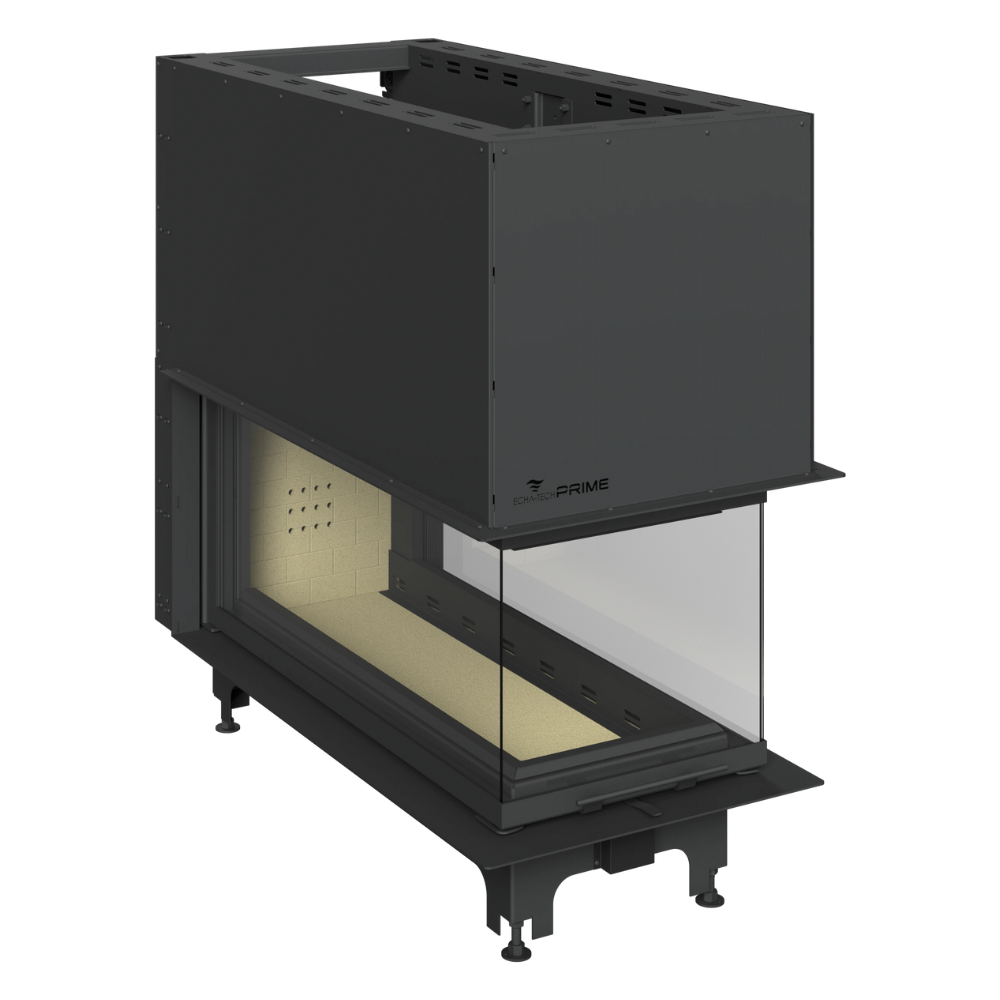 Recuperador de calor a lenha, com interior em ferro fundido ou em vermiculite.